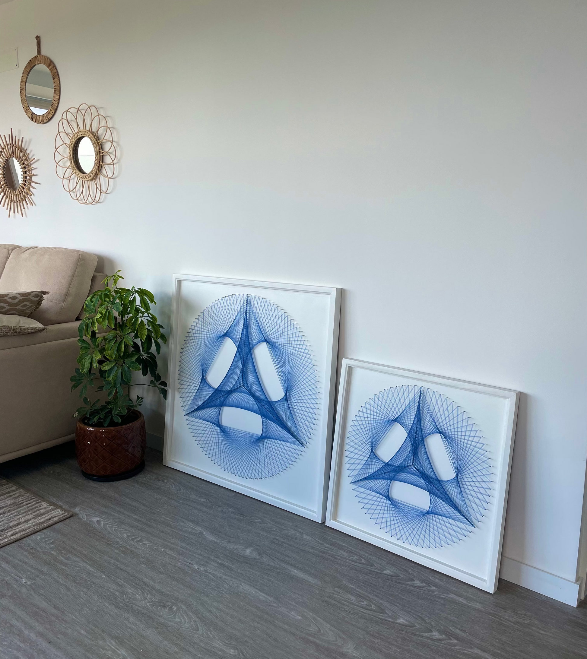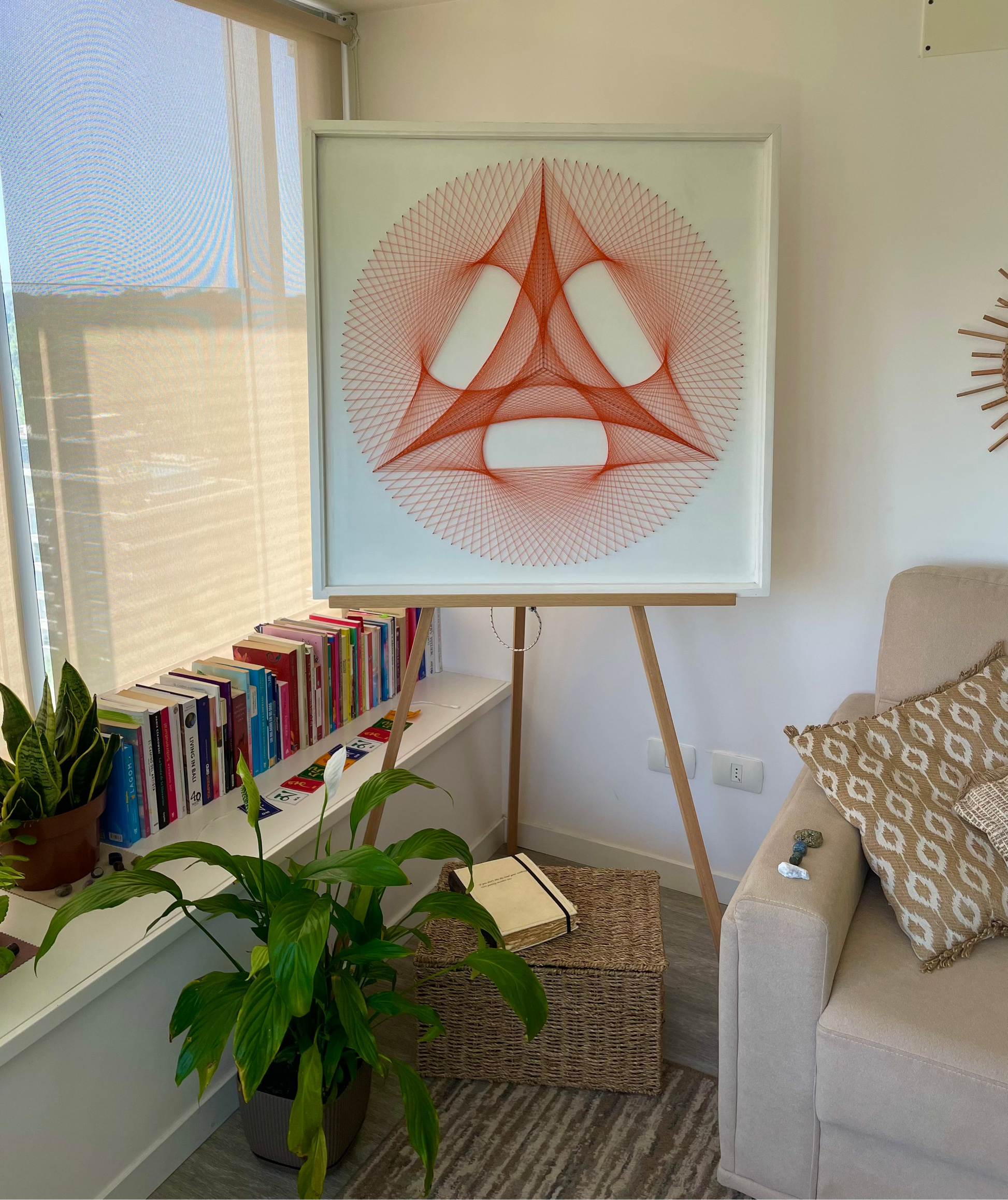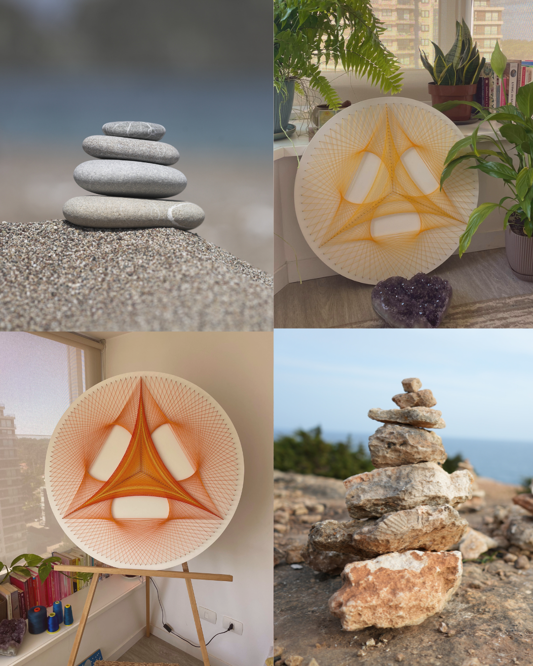 La geometría Equilibrio se inspira en el triángulo, un símbolo antiguo que representa unión, estabilidad y coherencia. A través del proceso de creación, esta obra invita a observar cómo nuestros pensamientos, emociones y acciones se relacionan, y cómo al alinearlos, la energía comienza a fluir de forma más clara y ordenada.